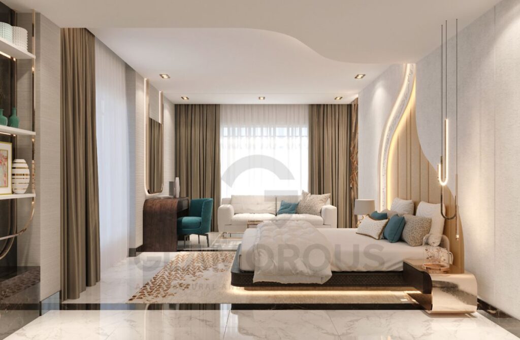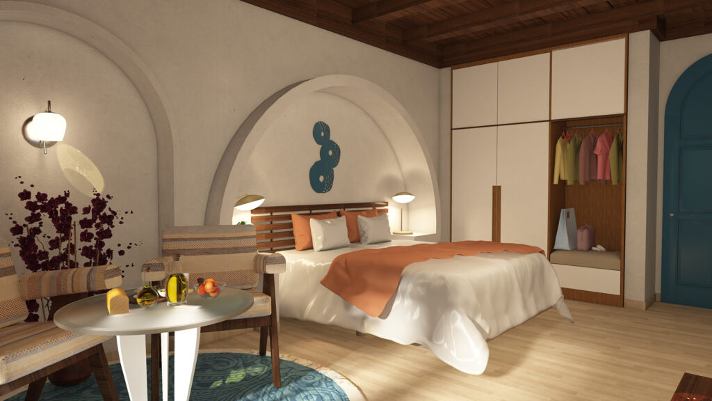 في غرف النوم، يركّز التصميم على: